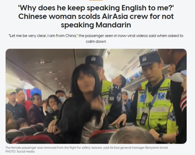 大量网友对该女子行为表示不满,认为在国际航班上使用英语沟通是基本规则。