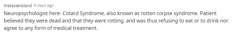 “我是个神经心理学家,我感觉科塔尔综合征(烂尸综合征)是最奇葩的了,