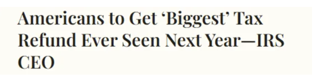 IRS高官预测:2026年美国人或迎来“史上最大退税”