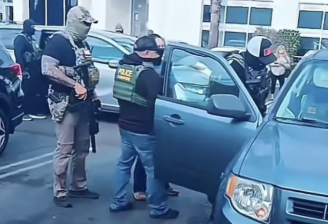 目击者拍摄的视频显示,执法人员身着绿色战术背心、驾驶无标识车辆,不断询问“你有身份证吗?”、“你是美国公民吗?”。数分钟后,一名男子试图驾车离开时,被执法人员用枪指着逼停,随后被拘留。