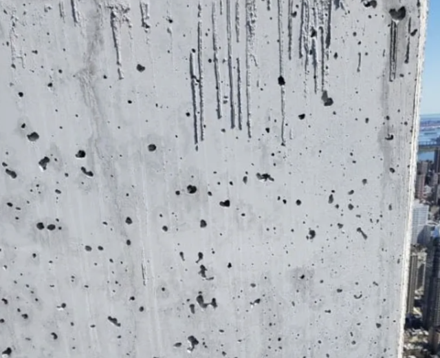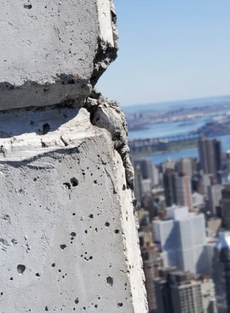 随着时间推移,问题不断浮现。施工期间,混凝土浇筑后多次出现裂痕和渗水现象;竣工后,裂缝沿着承重立柱和外墙逐渐扩散。工程师史蒂夫·邦焦诺(Steve Bongiorno)指出,大楼的实际受力已经超过设计时的计算值。这意味着风压、温差、振动等外力都在加速混凝土的老化与破损。裂缝一旦渗入雨水,内部钢筋生锈膨胀,会进一步扩大破坏,形成恶性循环。