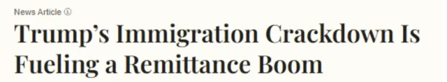 恐惧与不确定让许多无证移民选择“提前行动”——把辛苦赚来的钱尽可能寄回家乡,以防哪天被遣返。结果,这场“恐惧驱动”的行动,意外让多国的经济出现一轮汇款暴涨。