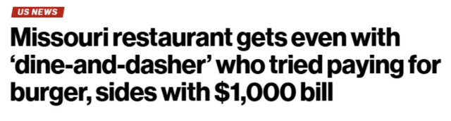 在密苏里州,距离圣路易斯(St. Louis)约 20 英里的曼彻斯特(Manchester)的一家酒吧烧烤店差点“损失惨重”。要是企台当时少看一眼,可能就要倒贴一大笔了。