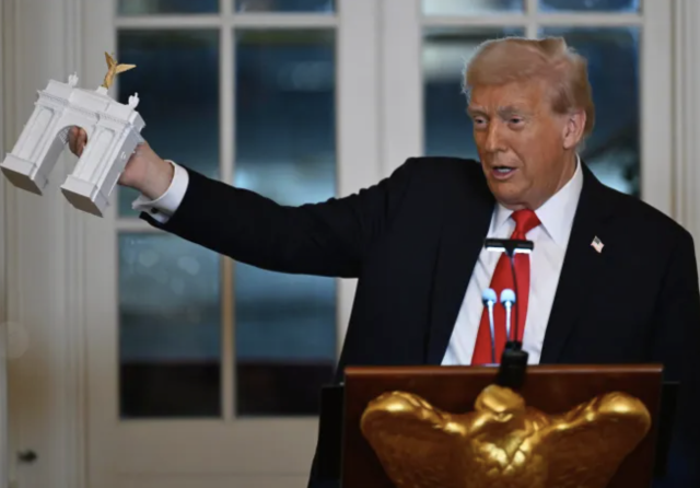 特朗普直接监督舞厅的设计与施工,明确要求“体现美国的辉煌与金色精神”,使用金色装饰线条、白色大理石墙面和水晶吊灯。