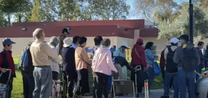洛杉矶华人区柔似蜜社区中心,在感恩节前被一条长得看不到尽头的队伍包围。 天还没亮,冷风里已经站了上百位长者。到了早上七点多,队伍扩成五、六百人的长龙,而这些人,大多数都是华裔老人。