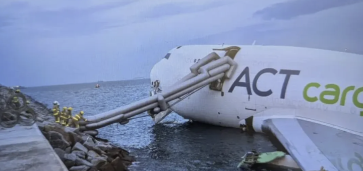 突发! 波音坠毁香港机场 冲出跑道 机身断成两截 一半插进海里 地面2人惨死!